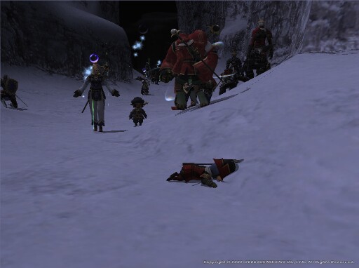 FFマーフィーの法則がありまして、フリーズするときは、まずマチガイなく緊迫した状況の時だったりしますので、祈るような気持ちでログインしたりしていますが、今のところ死体累々という状況には出くわしていませんので問題ないでしょう (ォィ